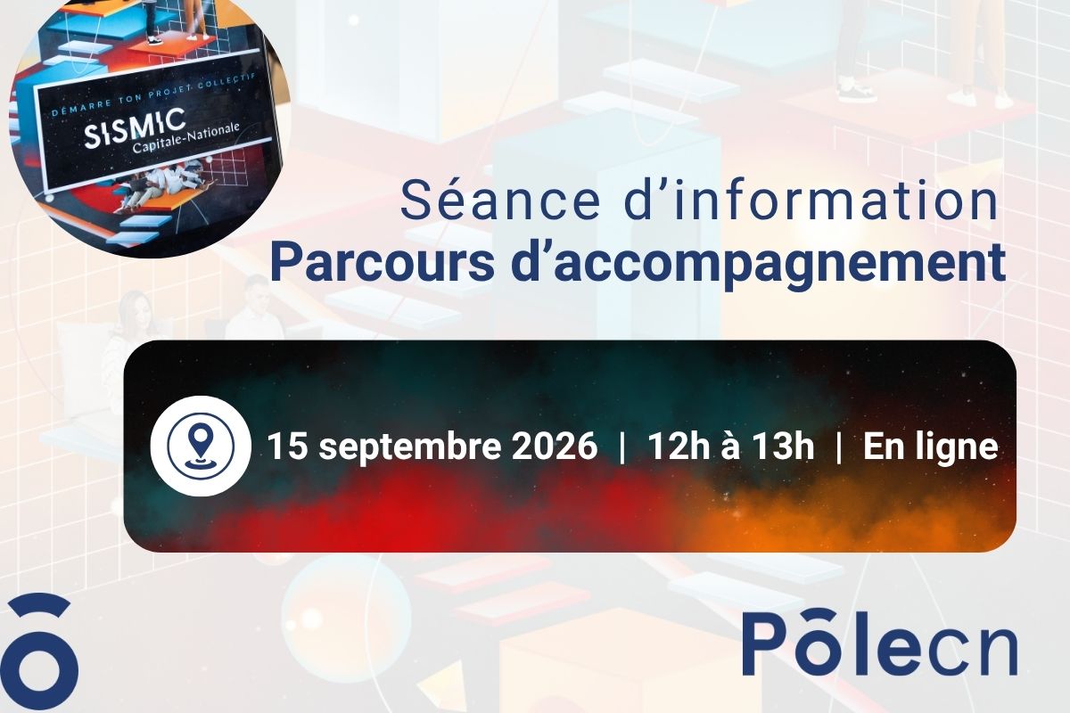 Participez à notre séance d’information pour découvrir le parcours d’accompagnement au démarrage de projet offert par le Pôle CN. Vous verrez comment ce parcours peut vous guider de l’idéation au développement de votre initiative en économie sociale.