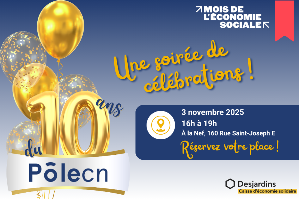 En novembre, le Chantier de l’économie sociale ainsi que les 22 Pôles d’économie sociale du Québec agissent de concert pour rappeler que choisir l’économie sociale, c’est donner du sens à l’emploi, à l’entrepreneuriat, à nos achats et à notre implication.