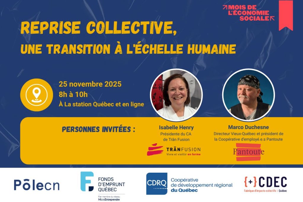 Pourquoi? Parce que c’est le Mois de l’économie sociale. Un moment privilégié où vous pouvez en apprendre plus sur ce mode entrepreneurial et en constater les retombées économiques et sociales engendrées dans les différentes régions du Québec.